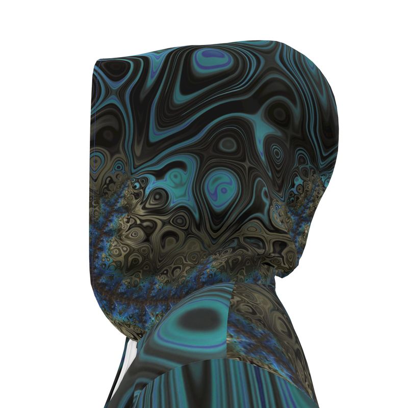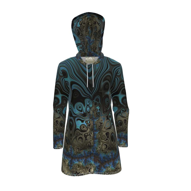 Dancing in the Rain ; ) women's raincoat/anorac/imperméable • above knee / hooded / long sleeves / drawstring / zipper• 2 waterproof fabric options: Breathable quick dry (medium weight, soft yet holds shape) or Ella (extra light but tough) • 2 side pockets (15w x 24.1cm / 5.9w x9.5") with synthetic silk lining • 7 sizes: 7S XXS to XXL • care: washing machine at 30°F 85°F / low tumble dry / no wring / low iron heat • main colors: blue black gold
