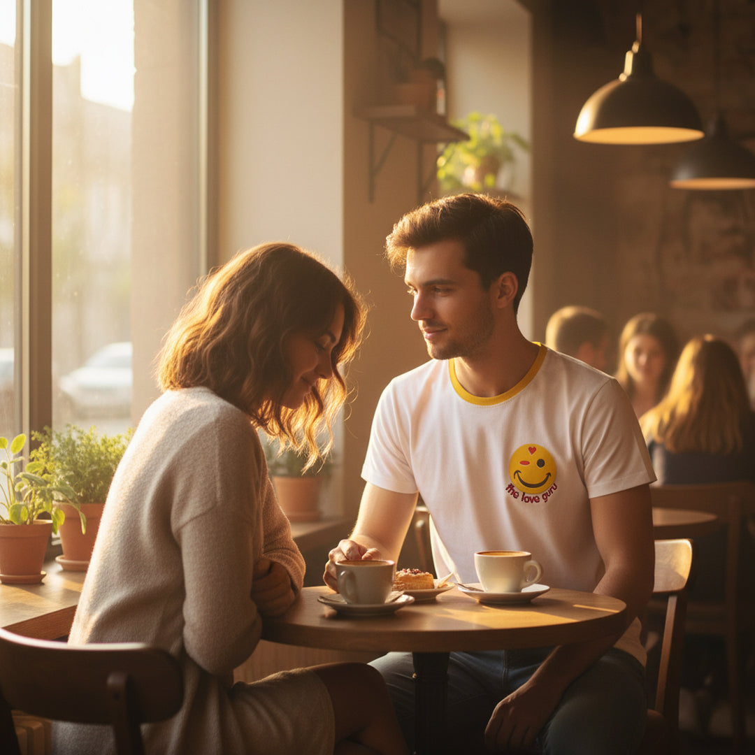 Happy T-shirt I 12 "love guru" (S30670) - print on both sides ; ) • art theme: 3D funny sunny joyful guru wise love wink ; ) • main colors: yellow red • unisex T-shirt: • 2 fabrics: recycled poly (4% elastane / moisture wicking) or Bounce cotton Jersey (elastane / midweight / soft / stretchy) • 12 sizes: 2XS - 2XL • washing machine: 30°C 85°F / low tumble dry / no wring / low iron or steam