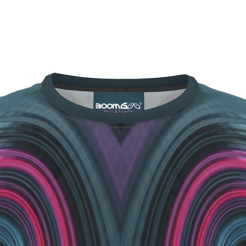 Abstract art all-over print : ) T-shirt F571 "Third Eye" I 7b • art theme: 3rd eye modern / neon / psychology art ; ) • main colors: fuchsia azure blue purple rain : ) • unisex T-shirt: • 2 fabrics: recycled poly (4% elastane / moisture wicking) or Bounce cotton Jersey (elastane / midweight / soft / stretchy) • 12 sizes: 2XS - 2XL • washing machine: 30°C 85°F / low tumble dry / no wring / low iron or steam
